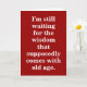 Citation d'anniversaire humoristique en rouge pour la vieillesse. La couleur Arrière - plan peut être modifiée.