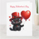 Carte Drôle de chat noir avec ballons Saint-Valentin
