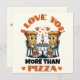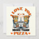 Partagez une tranche d'humour et d'amour pour la Saint-Valentin avec notre carte "Je t'aime plus que la pizza" ! Avec une illustration de dessin animé hilarante représentant deux personnes en forme de pizza qui profitent d'un dîner aux chandelles (avec encore plus de pizza !), cette carte est parfaite pour les amateurs de pizza qui ont le sens de l'humour. Le design mignon et drôle combine l'amour et les rires avec une touche originale sur le thème de la pizza. Le message à l'intérieur dit : "Tu es le seul à pouvoir voler une tranche de mon cœur ! (Mais ne touche pas à ma pizza.)" Que ce soit pour votre partenaire, votre meilleur ami ou un autre passionné de pizza, cette carte est un moyen délicieux de dire "Je t'aime !". Modifiez le texte de la page produit ou utilisez l'outil de conception pour changer le style ou la couleur