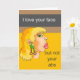 Cette drôle de carte de voeux que vous manquez est conçue pour choquer le mari, le petit ami, ou quiconque avec la déclaration "J'aime votre visage, mais pas vos abs." L'intérieur fait tourner les choses avec en ajoutant des lettres au mot "abs" et en le faisant "absence". Quelle façon mignonne, intelligente et aimante d'apporter un sourire à son mari militaire, à sa femme militaire ou à toute personne séparée de quelqu'un qu'ils aiment.