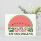 Quand la vie vous donne des melons, vous pouvez avoir la dyslexie. Si vous êtes dyslexique, vous aimerez cette carte de plaisanterie humour pastèque. Une drôle de carte de voeux.