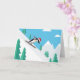 Ho ho ! Ce pingouin cool se balade dans la neige pour souhaiter un joyeux Noël à votre famille et à vos amis ! Cette carte de voeux de vacances amusante présente un petit pingouin drôle dans un chapeau de Noël rouge festif participant à un sport de ski alpin hivernal. La scène numérique pop art enneigée montagne est dans un style découpé de dessin animé, avec des arbres alpins verts et le ciel bleu. C'est une carte animée pour apporter de la joie, plus vous pouvez personnaliser pour une présentation pro imprimée. Particulièrement agréable pour les skieurs et les snowboarders qui aiment zoomer sur les pistes.