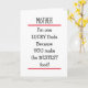 Jolie carte d'anniversaire à envoyer à votre mère avec le drôle de verset 'Mère, je suis un mec chanceux, parce que vous faites la meilleure nourriture! ' Noir, blanc et rouge - grande carte à envoyer à votre mère qui a un grand sens de l'humour.