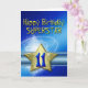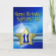 Une grande étoile dorée brillante dans laquelle vous pouvez mettre le nom du garçon d'anniversaire. L'arrière - plan est bleu avec de beaux tourbillons blancs.