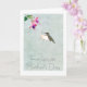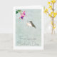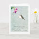 Cette carte de voeux du jour de mère comporte une belle image d'un colibri rubis-throated femelle et de belles fleurs fuchsia roses et pourpres.