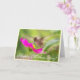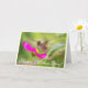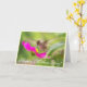 Carte de colibri de jour de mères. Photographie pure et non éditée d'un colibri de bébé alimentant sur le nectar d'une marguerite rose. Couleur magnifique et foyer parfait sur la tête du petit colibri.