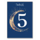 Carte de numéro de table mystique marine céleste bleu et or mariage