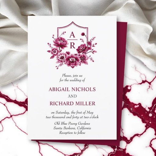 Carte de menu mariage à fleurs de pivoine de Bourgogne fleurie. Célébrez votre journée spéciale en beauté sans vous ruiner avec ce menu mariage abordable. Avec un beau design de style chinois bordeaux, cette carte est ornée d'un délicat arrangement de fleurs de pivoines inspirées de la porcelaine et de l'art chinois classique. Les tons bordeaux, roses et blancs évoquent l'élégance des peintures à l'encre, ajoutant une touche de romantisme à votre célébration. Le dos est de couleur bordeaux.
