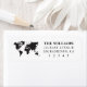 Les étiquettes d'adresse de retour des noms de carte du monde modernes, avec une icône de carte du monde en noir sur un arrière - plan blanc. Customisez avec votre prénom et nom de famille, nom de famille ou nom de société.