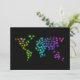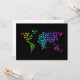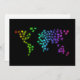 Carte du monde faite d'illustrations d'animaux. Mignonne et amusante. Les animaux sont colorés dans les tons néons sur un arrière - plan noir, ce qui rend vraiment les couleurs vives.