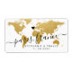 Carte du monde moderne or avec un emplacement de coeur personnalisé et destination mariage avec les noms de la mariée et du marié et date mariage sur étiquettes autocollants qui sont parfaits pour un thème de voyage douche nuptiale ou voyage amoureux de couple mariage ou de répétition dîner. Déplacez le coeur n'importe où sur la carte et tapez le nom de la ville ou du pays. - Visitez notre Designer Shop pour coordonner les articles avec le même thème de voyage international!