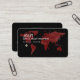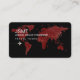 Carte des couleurs bordeaux vieilli du monde sur un arrière - plan noir, avec l'image d'un petit avion, personnalisée avec le nom et les initiales de l'agent de voyage.