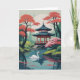 Un cygne plané devant le pavillon asiatique entouré d'arbres en fleurs