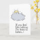 NewParkLane - Ajoutez de bonnes vibrations et du soutien grâce à cette carte de visite pour quelqu'un qui subit une chimiothérapie ou un autre traitement médical, ou qui traverse des temps difficiles pour d'autres raisons - comme la dépression - et aidez-les à se sentir aimés, vus et entendus. La carte a un mignon petit soleil et nuages gris, avec "Si vous avez envie de parler, je suis ici pour écouter.. !" citation ; le texte intérieur dit : "Je vous ai eu un enfant ! Accrochez-vous là ! ' dans une typographie de script amusante. Tous les devis sont modifiables. Ajoutez votre nom ou un autre message pour un design personnalisé. Consultez cette collection de lutte contre le cancer pour obtenir plus de cartes et de cadeaux pour les patients, les adeptes du cancer et le personnel médical.