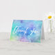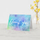 En utilisant une police d'écriture moderne et décontractée, j'ai créé des graphiques représentant les mots "merci". L'arrière - plan était recouvert d'une image qui dupliquait un lavage multicolore à l'aquarelle avec des bleus, des verts, des violets et des touches de rose et de jaune. // 100 //