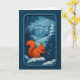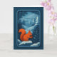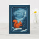 Un écureuil orange vif serre un cône de pin perché sur une branche enneigée dans cette illustration en couches de style découpage. Entourée de collines givrées, de pins et de flocons de neige qui tombent doucement, la scène capture un moment de curiosité silencieuse au cœur de l'hiver. Les tons chauds de l'écureuil contrastent magnifiquement avec les bleus frais de la forêt, créant une composition visuellement saisissante et émotionnellement cosy.