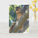 La photographie d'un animal de la nature, d'un écureuil en gros plan dans un arbre, et un salut composent cette carte.