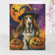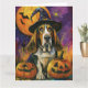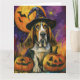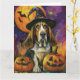 Carte Éffrayant Halloween Hound Sorcière Et Citrouille