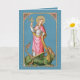 Selon la tradition, Sainte Marguerite (ou Sainte Marina le Grand Martyr) a fixé sa vie pour le Christ pendant la persécution de Dioclétien au début du quatrième siècle. Bien qu'elle soit un célèbre martyr vierge, ironiquement elle est la sainte patronne des femmes enceintes et des femmes en travail. Le diable sous couvert de dragon, comme le raconte cette histoire d’origine inhabituelle du patronage, l’a avalée toute entière. Cependant, la croix qu’elle portait irritait tellement les entrailles du dragon qu’il l’a ramenée ou rompue pour se débarrasser d’elle. Même si les papes et les hagiographes médiévaux jugeaient cette histoire fantaisiste, elle fut néanmoins adoptée par les laïcs et les artistes, ne serait-ce que pour son symbolisme. Et la croix et le dragon ont été ses principaux attributs depuis. + Cette image de St. Margaret est particulièrement attrayante. La sainte, dont la beauté était légendaire, se dresse sur le dos d'un grand dragon vert qui touffe son manteau avec ses dents. Elle est couronnée d'une guirlande de roses, ses longs cheveux blonds qui coulent sur ses épaules. Elle porte un manteau rose vif sur une tunique blanche contre un arrière - plan bleu à motifs de petits points blancs et d'étoiles. + Cette gamme de produits met l’accent sur le parrainage de la grossesse et de l’accouchement par St. Margaret. Les couleurs dominantes rose et bleu cravate bien avec la coutume moderne d'utiliser ces couleurs pour les bébés filles et garçons. La doublure jaune doré du manteau permet un thème neutre pour le genre. + Fête : 20 juillet + Crédit photo (SAU 038) : Empreinte dorée néogothique antique à la frontière florale de St. Margaret [d'Antioche]", initialement publiée en chromolithographie par la Société de St. Augustin, Bruges, Belgique, fin 19ème siècle, de la collection privée du designer de l'ère religieuse. + Vous préférez un arrière - plan de couleur solide ? Supprimez simplement l'image du motif.