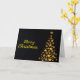 Faites une déclaration audacieuse avec cette carte "Joyeux Noël" élégante avec un arbre de Noël doré sur un arrière - plan noir élégant, parfait pour un message de vacances sophistiqué.