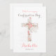 Elégante carte à plat pour confirmation avec une croix florale sur fond blanc. Personnalisez le front avec le texte, le nom et la date...à l'arrière avec du texte.