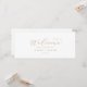 Cet élégant script doré accroché à l'en-tête du tableau de sièges est parfait pour un mariage simple. Le design minimaliste or et blanc présente une typographie romantique avec style glamour moderne. Personnalisable dans n'importe quelle couleur. Gardez le design minimal et élégant, tel quel, ou personnalisez-le en ajoutant vos propres graphiques et artwork. La carte s'imprime à l'avant et à l'arrière (double face). Veuillez consulter la collection pour connaître les cartes de classement des sièges du numéro de table de coordination.