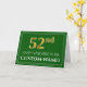 Carte Elégant Faux Gold Look 52e anniversaire, nom (vert