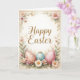 Célébrez Pâques avec grâce en utilisant cette carte magnifiquement conçue avec des fleurs pastel et des oeufs de Pâques délicats. La typographie élégante et les couleurs douces en font un choix sophistiqué pour envoyer des voeux de Pâques sincères. Parfait pour les proches ou comme pièce décorative pour les réunions de Pâques.