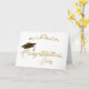 Elégante Golden Félicitations Graduate Graduate Card. Carte de graduation avec capuchon de graduation, écriture dorée moderne et ornement doré. Félicitations et un nom du diplômé sur le devant - personnalisez avec votre nom. Personnalisez le texte à l'intérieur de la carte ou effacez-le.