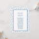 Guidez vos invités mariages dans le style avec cet élégant tableau de bord de table à fleurs bleues. Doté d'une bordure botanique intemporelle dans des tons bleu doux, ce design apporte une touche sophistiquée et classique à toute réception de mariage. Le script raffiné et la typographie serif créent une esthétique polie, parfaite pour les mariages traditionnels, côtiers chic, ou sur le thème du jardin. Entièrement personnalisable avec vos numéros de table et vos noms d'hôtes, il s'agit d'un ajout sans faille à votre décor mariage.