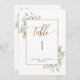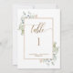 Carte Élégant Mariage de verdure Numéro de table, blanc
