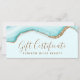 Élégant Gold Parties scintillant Blue Marble Agate Certificat cadeau. Parfait pour un salon de beauté, coiffeur, maquilleur ou cosmétologue.