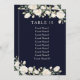Elégant tableau de siège avec guirlandes florales de roses crème et blanches sur un arrière - plan bleu marine foncé de minuit. La papeterie de coordination et la décoration de fête est disponible dans ma Princesse Robe et Collection Quinceanera Rose mais s'il vous plaît m'envoyer un message si vous avez besoin de moi ajouter d'autres articles.