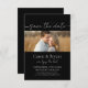 Élégant Script Enregistrer la date Monogram Invitation. Cet invitation photo est la combinaison parfaite d'une élégance simple et de caractéristiques de design minimaliste avec une photo pour commémorer votre journée spéciale. Monogramme sur le dos et design noir et blanc minimal pour votre mariage, anniversaire ou occasion spéciale.