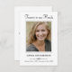Dimensions de la carte : 3,5 po x 5 po. Cette simple carte de prière commémorative peut être donnée en souvenir lors d'une célébration de la vie ou d'un service funéraire ou envoyée en hommage spécial à ceux qui n'ont pas pu y assister. Personnalisez cette carte avec une photo préférée et votre choix de prière ou de poème. Facile à customiser photo et tout le texte. Nos plus sincères condoléances à vous et à votre famille pendant cette période difficile.