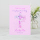 Elégante carte à plat pour confirmation avec une croix florale sur un arrière - plan rose. Personnalisez le front avec le texte, le nom et la date...retour avec du texte.