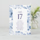Une carte de numéro de table de mariage magnifiquement conçue avec des illustrations délicates de fleurs bleues et une typographie élégante. Parfaite pour un thème de mariage sophistiqué et romantique, cette carte de numéro de table comprend également les noms des invités pour une touche personnelle. Idéal pour une décoration de mariage classique, moderne ou rustique.