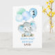 Carte Elephant Blue Boy Premier anniversaire mignon 1er