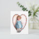 Une charmante invitation vintage de Saint-Valentin avec une mignonne petite fille timide avec une lettre d'amour devant un beau coeur de fleurs, peinte par l'illustratrice et artiste commerciale américaine Ellen Hattie Clapsaddle. De part et d'autre, vous avez beaucoup de place pour votre devise d'invitation et votre texte.