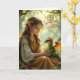A sweet whimsical Missing you card featuring an elven fairy in vintage dress playing a clarinet on a tree branch.