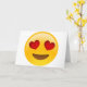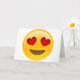 Dessin d'emoji drôle. Visage jaune avec des yeux de coeur rouge. Ajoutez votre propre texte. Changez la couleur de fond à votre préférée.