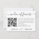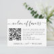 Voici notre carte mariage exquise ! Conçu avec un lettrage élégant créant un look sophistiqué et intemporel, cette carte enchanteresse porte un message sincère. Invitant chaleureusement vos invités à prendre part à votre initiative "Au lieu de Faveurs", il symbolise l'importance de rendre en retour. Découvrez le mélange parfait d'élégance intemporelle et de technologie de pointe. Notre carte intègre un code QR personnalisé, vous permettant de créer une expérience unique et interactive. Entrez simplement l'URL de votre code QR, et regardez vos invités immergés dans l'impact de votre cause choisie. L'utilisation d'un code QR sur une carte "au lieu d'une carte de faveurs" peut varier en fonction de vos intentions et objectifs spécifiques. Voici quelques objectifs communs pour l'utilisation d'un code QR dans ce contexte : 1- Fournissez des informations : Avec une simple analyse, vos invités peuvent accéder à des détails supplémentaires sur la cause que vous supportez. Découvrez sa mission, comprenez l'impact qu'elle engendre et apprenez comment leurs contributions seront utilisées. Laissez-les se lancer dans un voyage de connaissance et d'inspiration. 2- Diriger les invités vers une page de don : Grâce à la puissance du code QR, les invités peuvent contribuer de manière transparente à votre organisme de bienfaisance ou à votre cause. En établissant un lien direct vers une page de don, il simplifie le processus et leur permet de faire une différence significative. 3- Partagez des histoires ou des témoignages : Plongez dans les récits personnels qui éclairent l'importance de votre cause. Liez le code QR à des vidéos ou des sites web présentant des histoires touchantes, des témoignages sincères et des expériences inspirantes liées à la cause que vous soutenez. Que leurs coeurs soient bougés et leurs esprits élevés. Tous les styles, couleurs et tailles de texte peuvent être modifiés selon vos besoins. Si vous avez besoin d'aide ou d'articles correspondants, n'hésitez pas à me contacter.