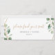 Conçu pour s'harmoniser avec notre collection Moody Greenery mariage, cette table personnalisable Table Seating Header Card présente des feuilles d'eucalyptus vert sauge à l'aquarelle accentués d'un cadre géométrique doré et jumelé à un script élégant en or et une police serif élégante en gris. Pour effectuer des modifications avancées, accédez à l'option "Cliquez pour customiser plus loin" sous Personnaliser ce modèle.