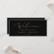Cet en-tête d'accueil en métal doré noir est parfait pour un mariage moderne. Le design minimaliste romantique présente une belle et élégante typographie de champagne jaune doré sur un arrière - plan noir au look épuré et simple. La carte s'imprime à l'avant et à l'arrière (double face). Veuillez consulter la collection pour connaître les cartes de classement des sièges du numéro de table de coordination.