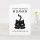 Drôle carte d'anniversaire pour les amoureux de les chats ! Illustration d'un chat noir avec un texte qui dit "Joyeux Anniversaire humain. Maintenant, amuse-moi."