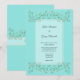 Des vignes de fleurs blanches se rencontrent pour former un coeur sur arrière - plan bleu. Simple Faire-part de mariage floral élégant.