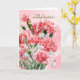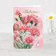 De belles fleurs d'oeillets roses et des gouttes de neige en blanc avec un papillon à polliniser, créent un joli message de voeux d'anniversaire écrit en espagnol.