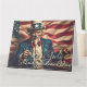 Image poétique et émouvante d'une figure patriotique intemporelle, fière devant un drapeau américain flottant, emblème de courage, de liberté et de l'esprit durable d'une nation.