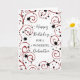 Carte d'anniversaire pour marraine avec un design amusant étoiles et tourbillons en noir et rouge et verset réfléchi.