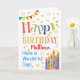 Un coloré, texte a basé la carte d'anniversaire pour que vous customisiez avec le nom du destinataire, avec l'étamine de point de polka, les bougies lumineuses et rayées de gâteau d'anniversaire et arrosé avec des étoiles d'or-effet. Le texte modelé indique, le "joyeux anniversaire" et là est également "ont un jour merveilleux !" dans le lettrage bleu (la NOTA: les étoiles et les contours d'effet d'or sera comme vue et ne sera pas imprimée en encre métallique.)